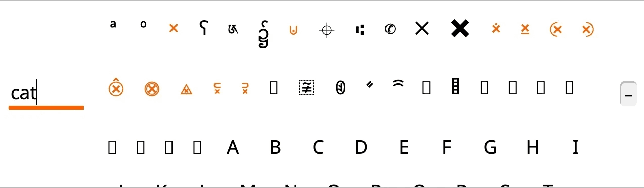 Glyph chooser is disorganized.