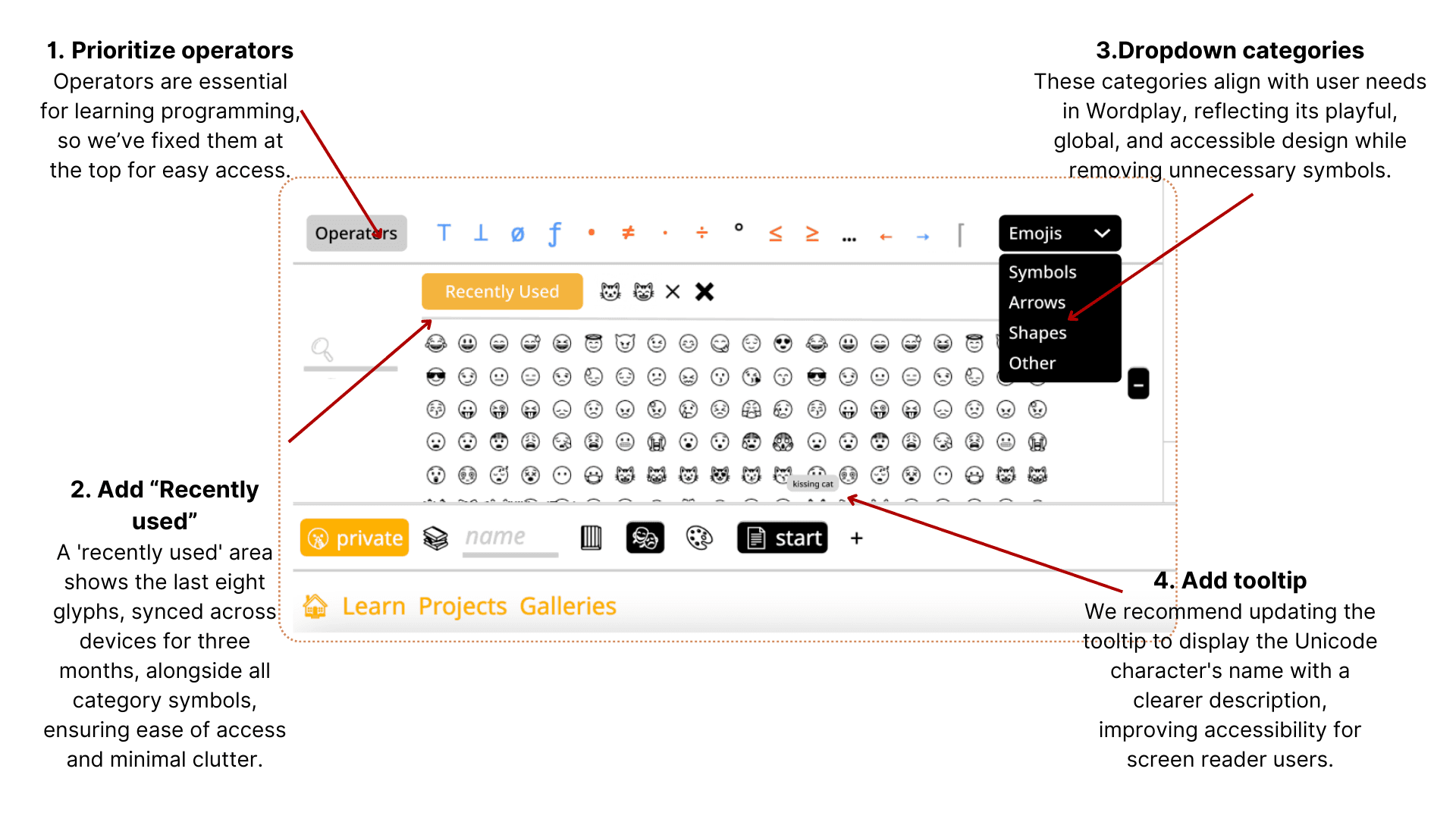 To enhance accessibility, we plan to incrementally translate the most commonly used Unicode, starting with those popular among elementary to middle school students. We suggest that the locale team could handle the translations by category, or we could enlist external contributors for this task.